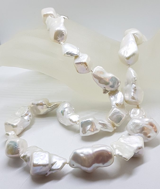 Sterling Silver Long Baroque Pearl Necklace / Chain