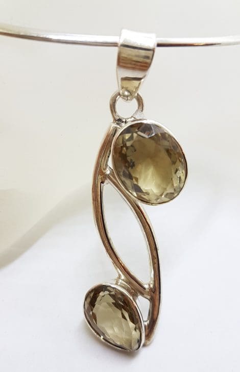 Sterling Silver Long Citrine Curved Pendant on Choker Necklace / Chain