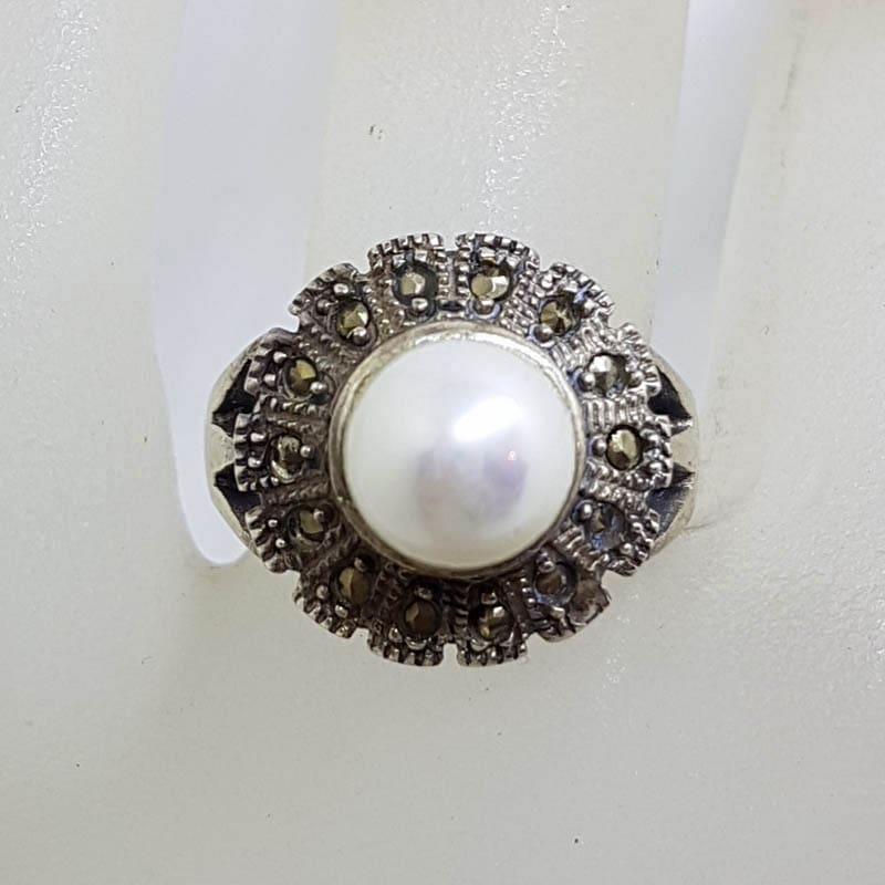 Categories: Contemporary Silver Pearl Rings, Marcasite Jewellery, Marcasite rings