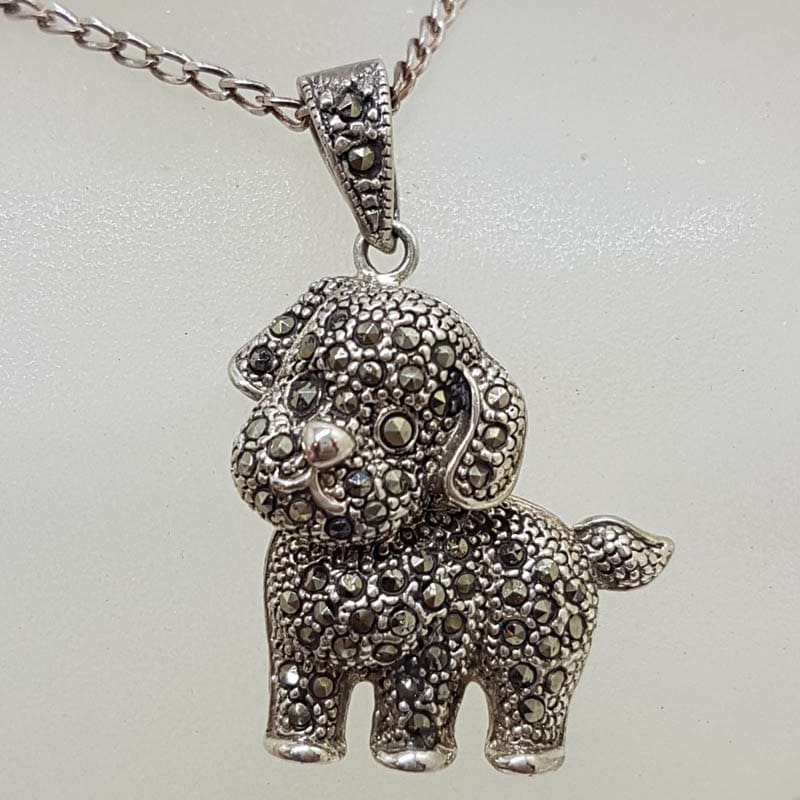 Sterling Silver Marcasite Dog Pendant on Sterling Silver Chain