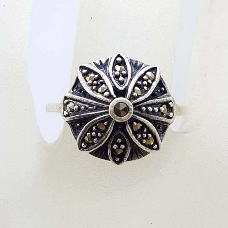Tags: Cluster, flower, Marcasite, Ring, Round, silver, Star, Sterling Silver