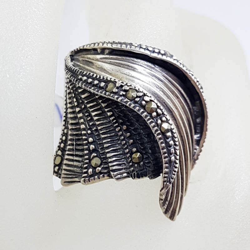 Sterling Silver Marcasite Wide Wave Design Ring