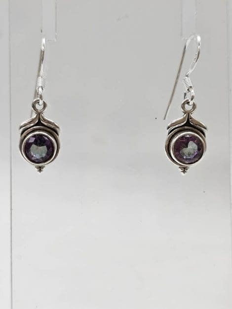 Sterling Silver Mystic Quartz / Mystic Topaz Dainty Round Bezel Set Drop Earrings