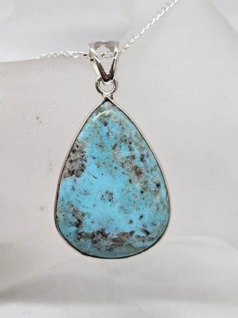 Sterling Silver Natural Turquoise Large Teardrop / Pear Shape Pendant on Silver Chain