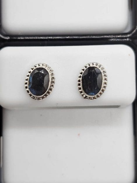 Sterling Silver Onyx Oval Twist Rim Studs Earrings
