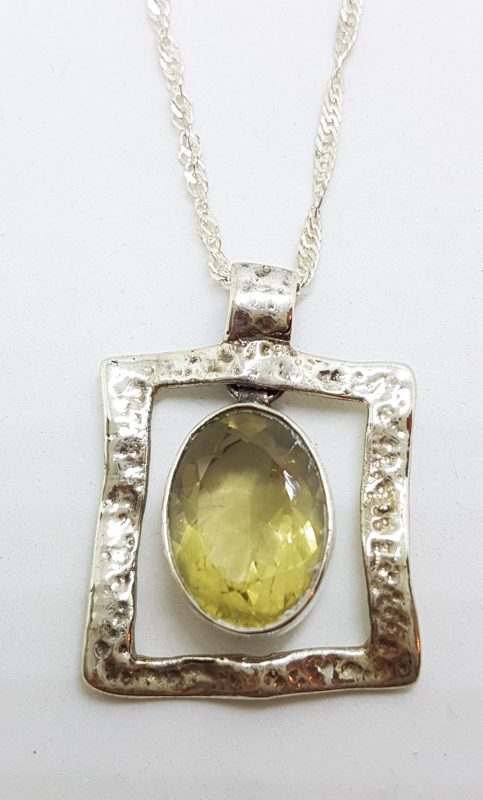 Sterling Silver Oval Lemon Quartz in Square Pendant on Silver Chain