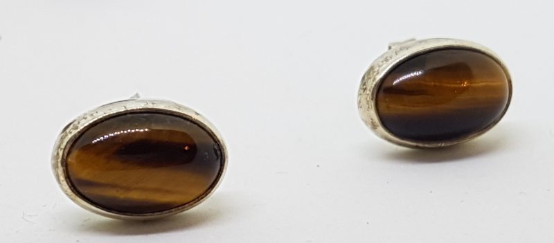 Sterling Silver Oval Tiger Eye Stud Earrings