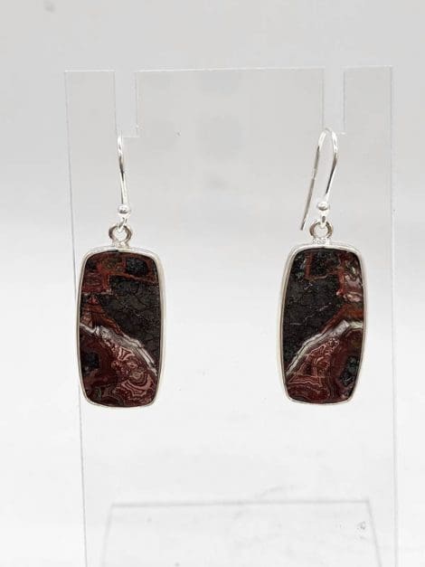 Sterling Silver Rectangular Bezel Set Drop Earrings
