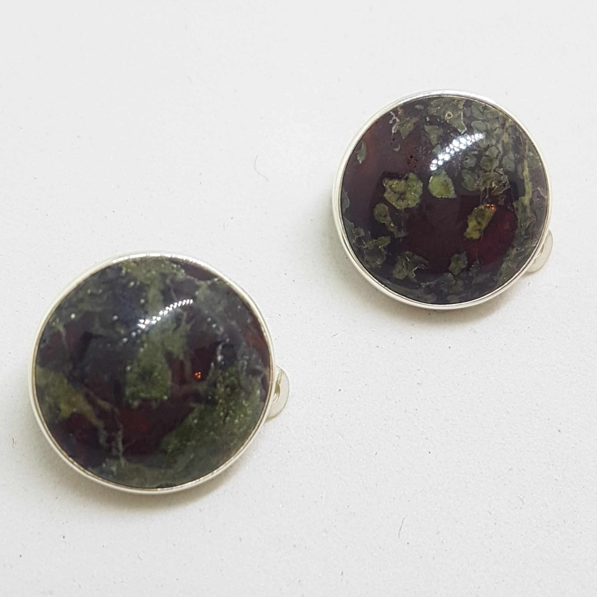 Sterling Silver Round Clip-On Earrings – Dragon Blood Jasper