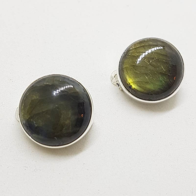 Sterling Silver Round Clip-On Earrings – Labradorite