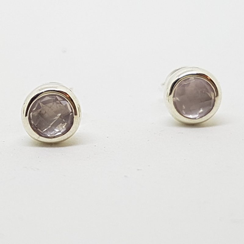 Tags: earrings, Faceted, Rose Quartz, Round, Sterling Silver, Stud, Studs