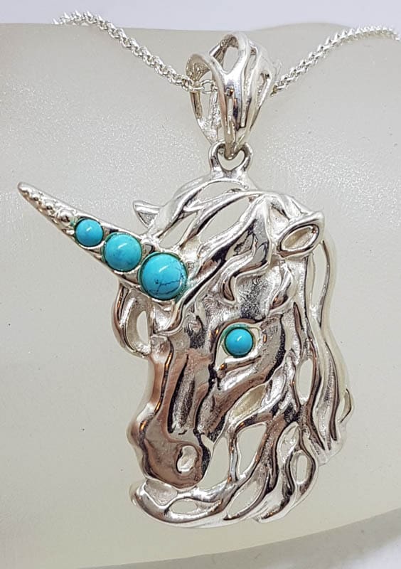 Sterling Silver Turquoise Unicorn Large Pendant on Silver Chain