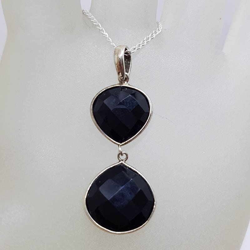 Sterling Silver Two Drop Onyx Pendant on Silver Chain