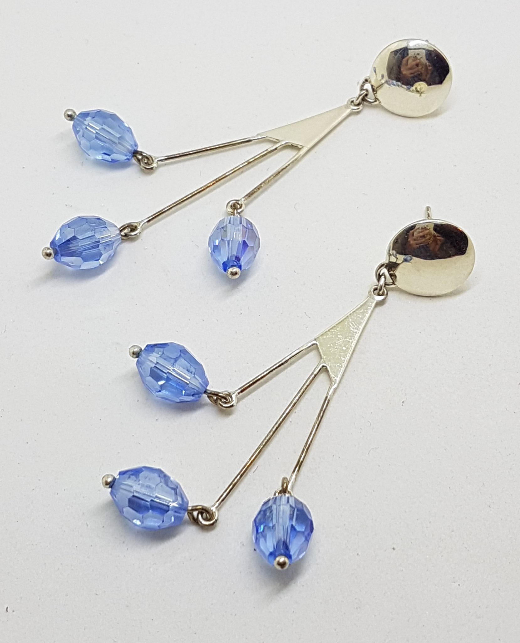 Sterling Silver Very Long Blue Crystal Drop Earrings