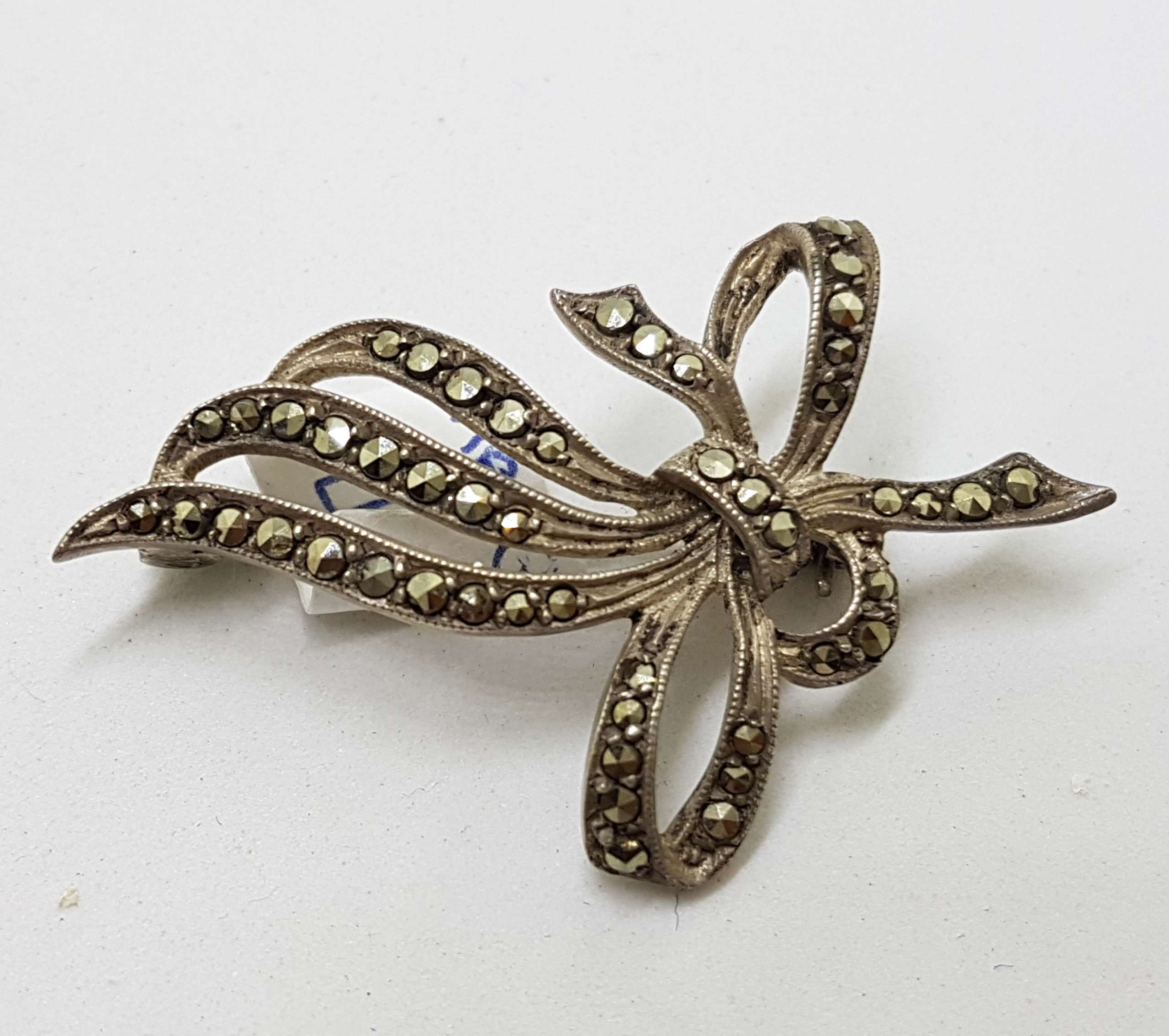 Sterling Silver Vintage Marcasite Brooch – Ribbon