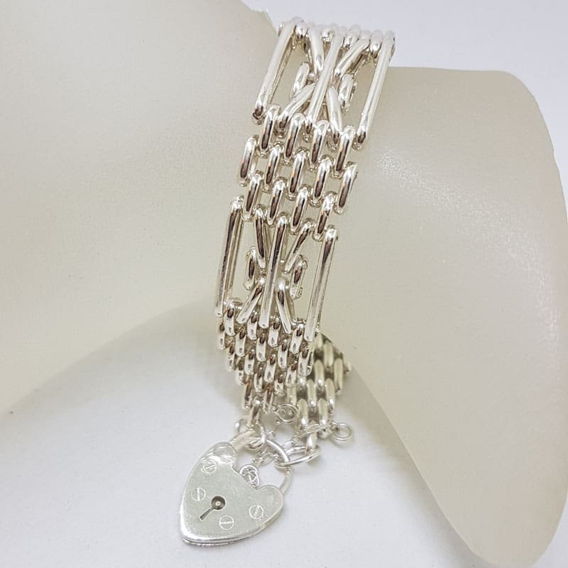 Sterling Silver Wide Gatelink Padlock Bracelet