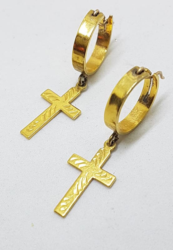 Sterling Silver With Plated Cross on Hoop Earrings – Vintage