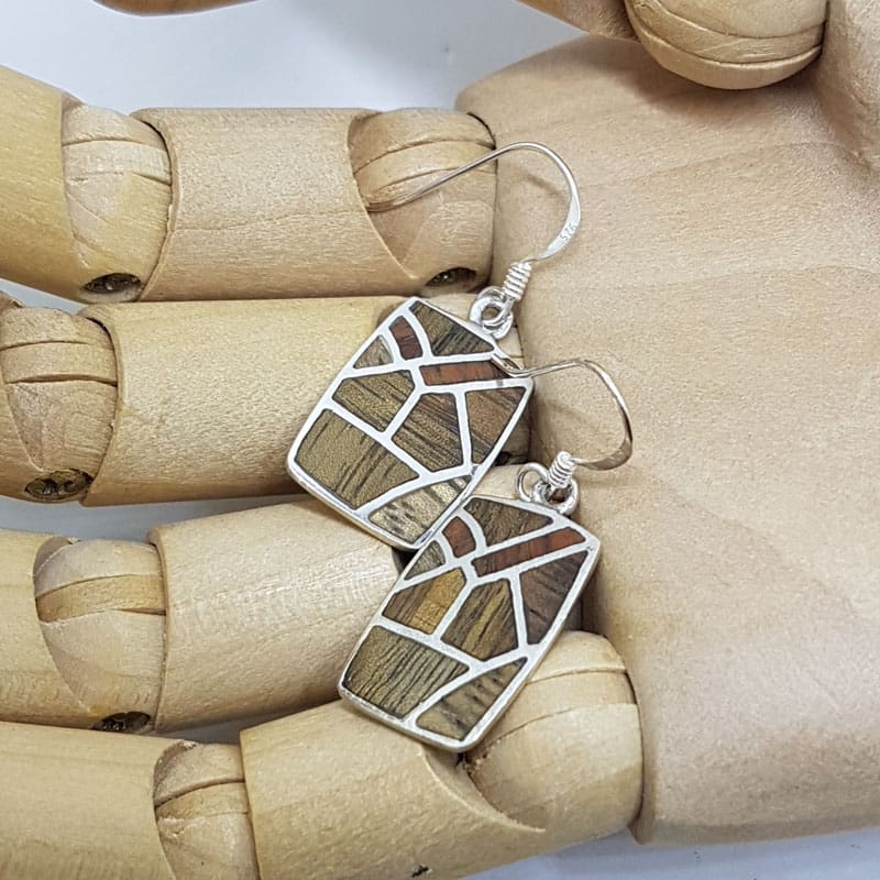 Sterling Silver Wood / Timber Drop Earrings – Rectangular Shape – Available in different wood colours