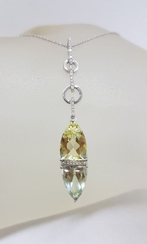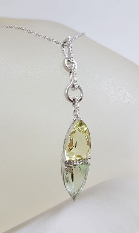 Tags: 9ct, Chain, citrine, Diamonds, Green Amethyst, Pendant, Prasiolite, White Gold